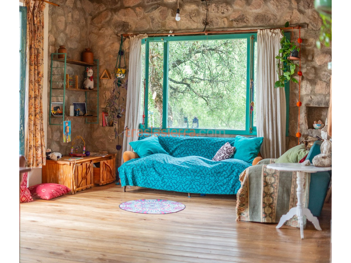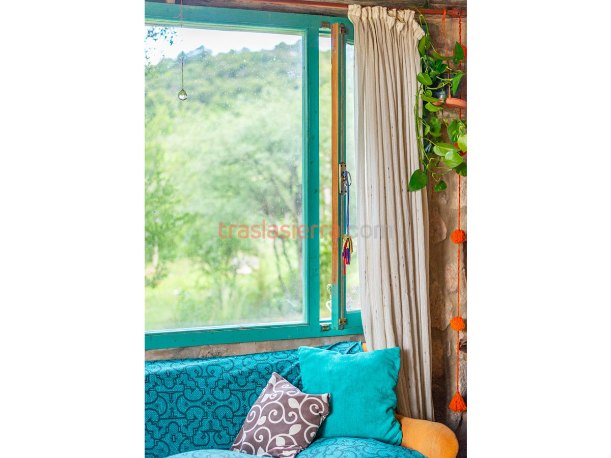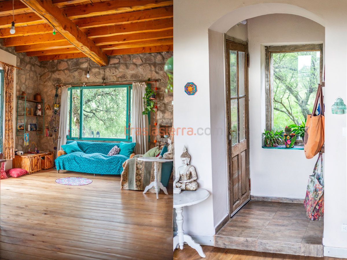 La casa se encuentra en medio de la naturaleza, en el faldeo de las sierras, dentro de una reserva natural de 400 hectáreas de bosque nativo, arroyos, senderos y espacios naturales preservados.