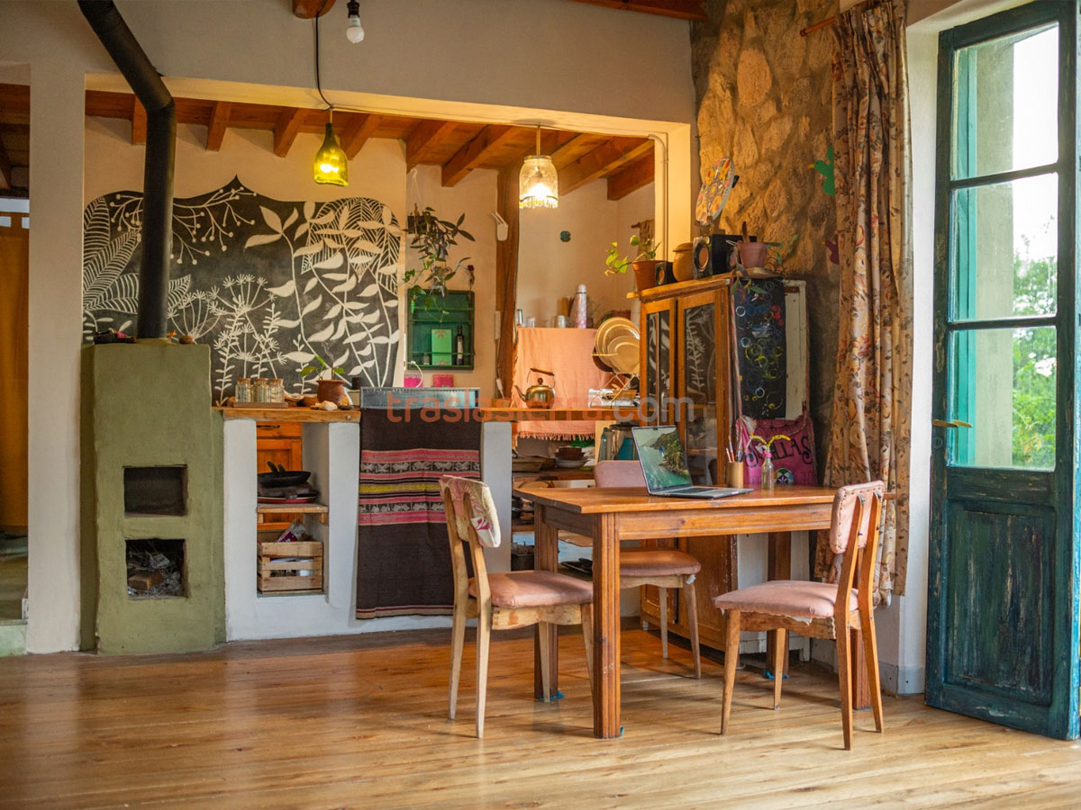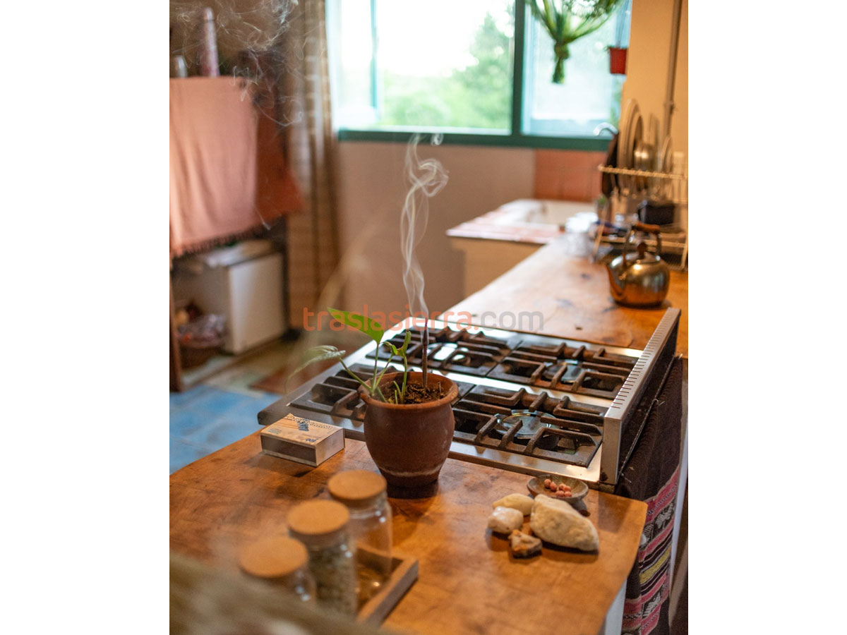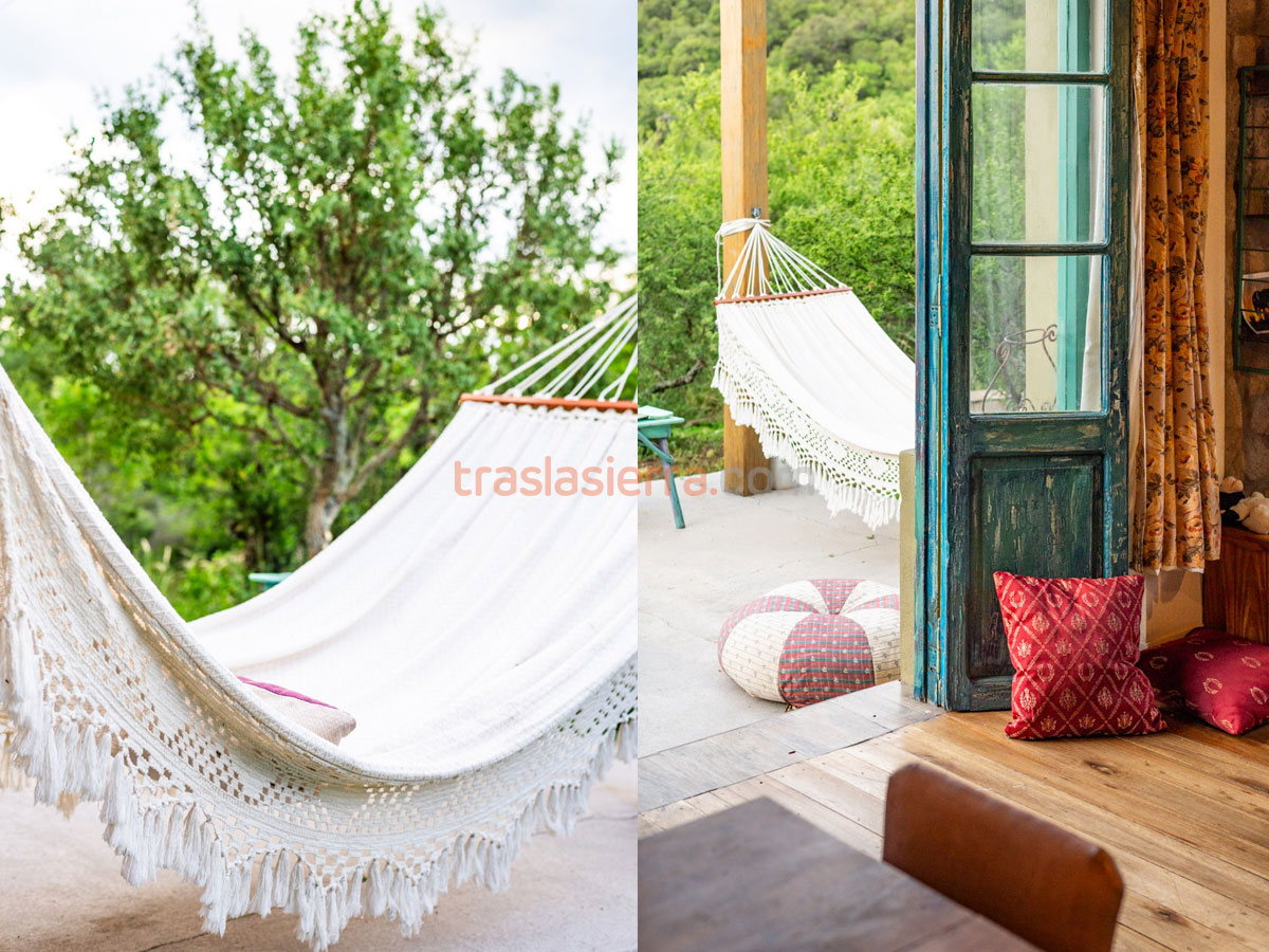La casa se encuentra en medio de la naturaleza, en el faldeo de las sierras, dentro de una reserva natural de 400 hectáreas de bosque nativo, arroyos, senderos y espacios naturales preservados.