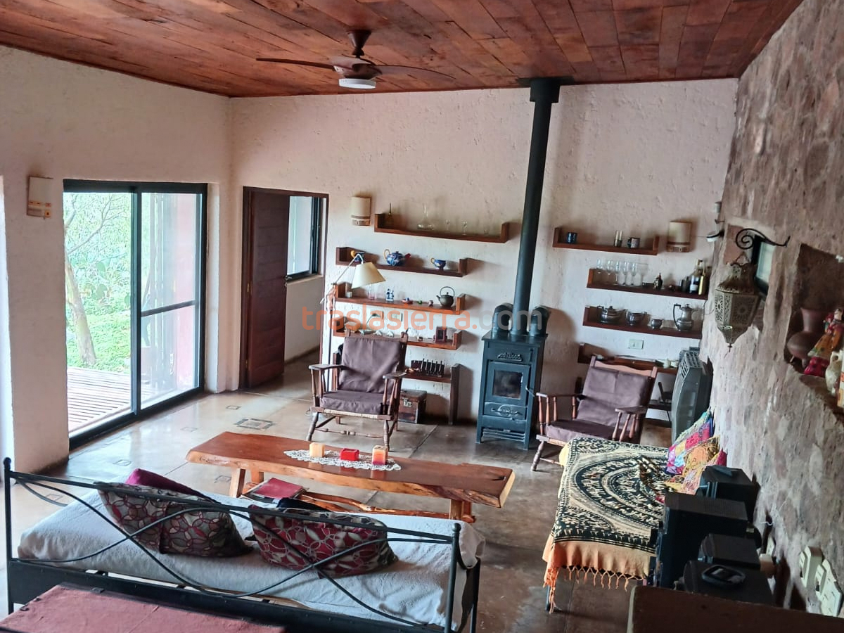 TARIFA PROMOCIONAL PARA ENERO 2 PERSONAS, 15 NOCHES. La vivienda está ubicada en La Población al pie del cerro Champaquí a 960m de altura a 400m del balneario qué consta de cascada y ollas naturales. Sobre un terreno de 5000m cuadrados, tiene una gran piscina de 15m de largo para práctica de natación con deck de vistas a las sierras y al valle Conlara. La vivienda tiene 98m cuadrados y capacidad para hasta 4 personas, distribuidas en un dormitorio de matrimonio con vestidor, baño con hidromasaje; y en el gran living hay 2 sofá cama con salida a un gran deck con vistas. Parrilla, horno de barro. Guardacoches para 2 autos.