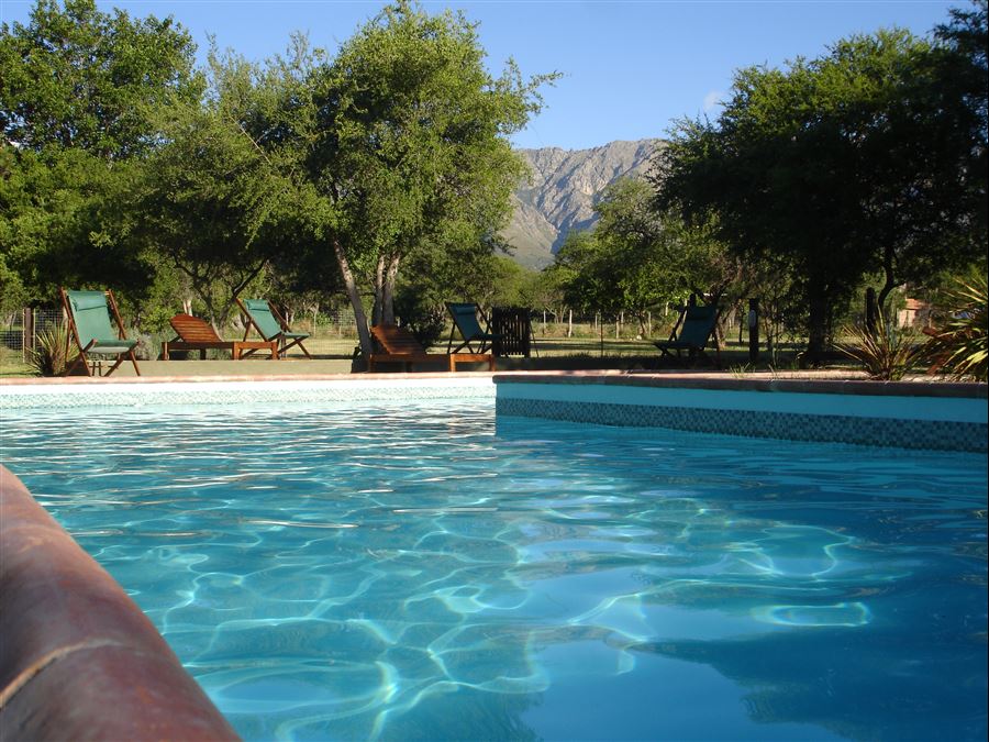 leer un libro junto a la pileta con vista a las Altas Cumbres...