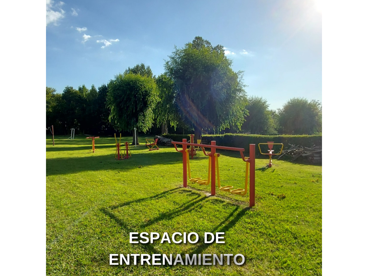 ![]() | Recreación | Gimnasio cubierto y plaza saludable, para que puedas hacer deporte contemplando la naturaleza. |