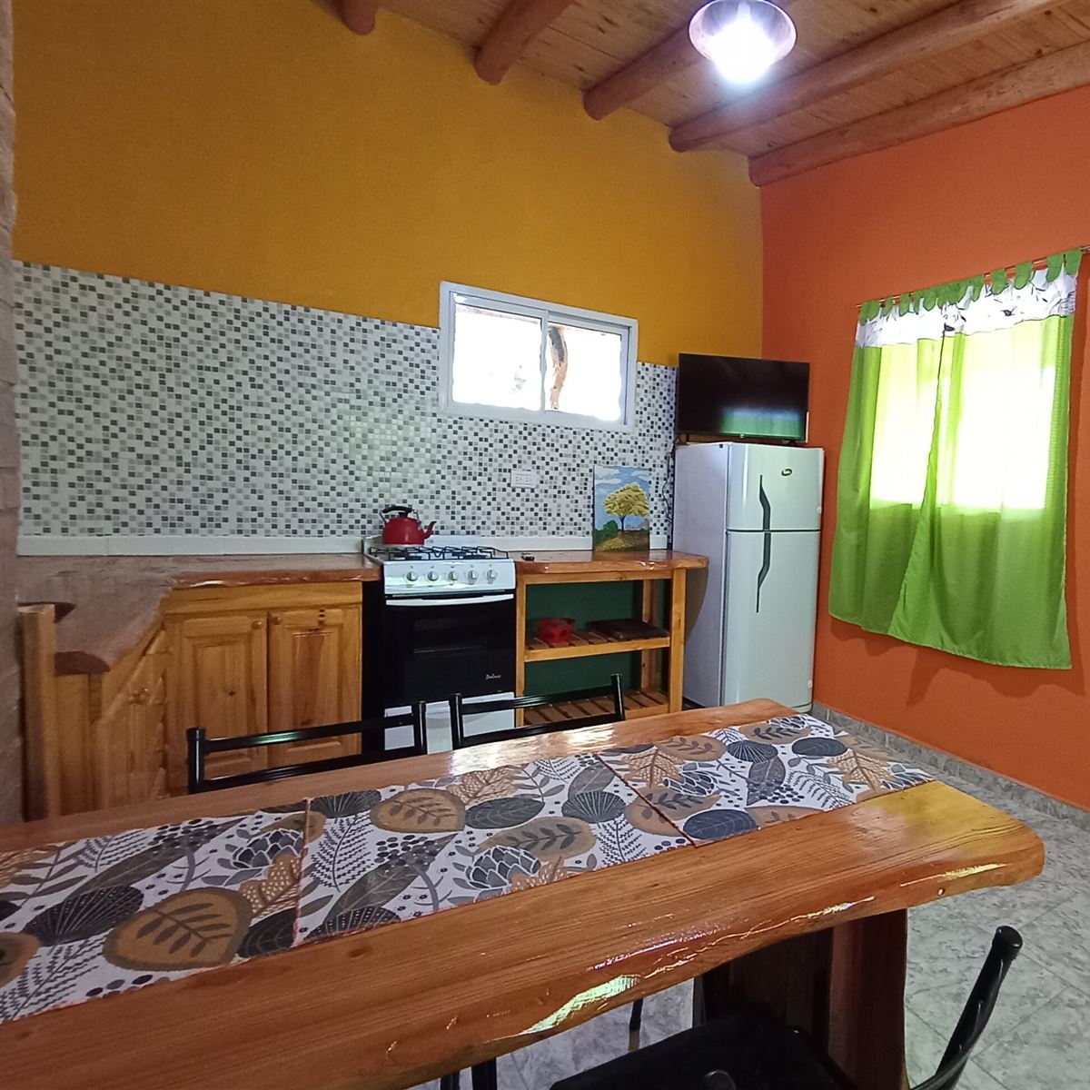 La cabaña 1 tiene capacidad de 2 a 4 personas con una habitación matrimonial y una cama marinera en el comedor, un baño completo, cocina comedor.