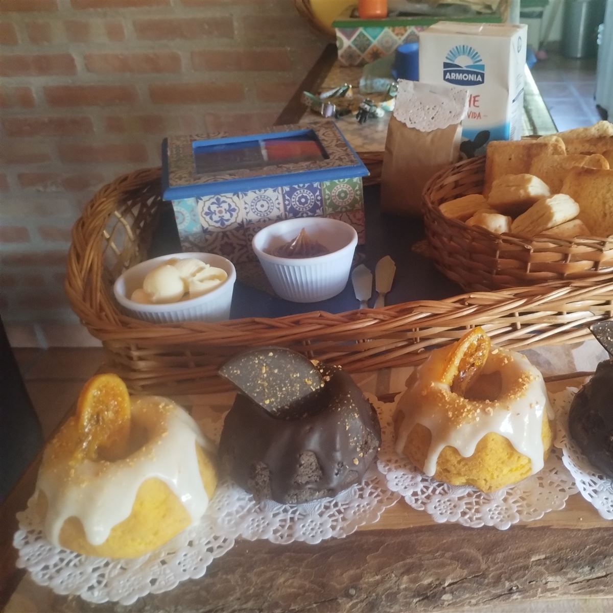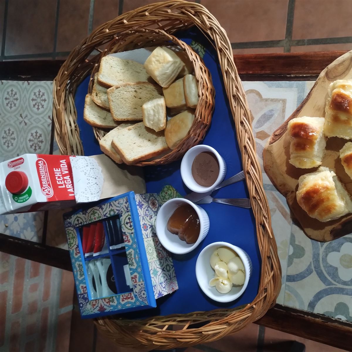 ![]() | Desayuno | Seco (leche -café-te-mate cocido-yerba-tostadas de pan casero-criollitos- medialunas o budines caseros -manteca-mermelada o dulce de leche) |