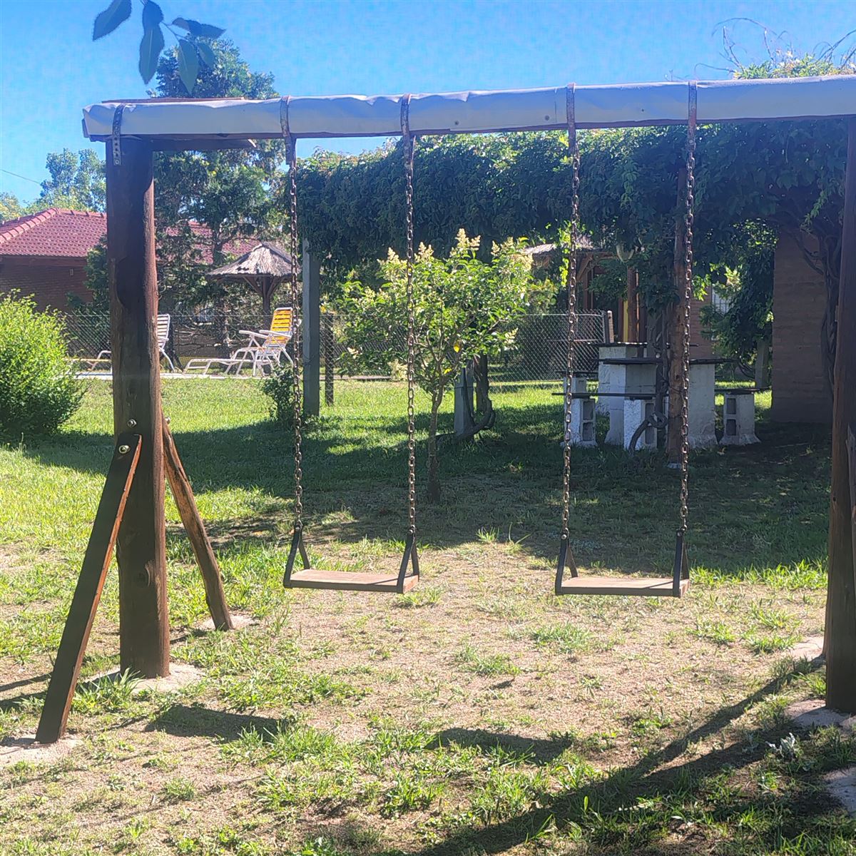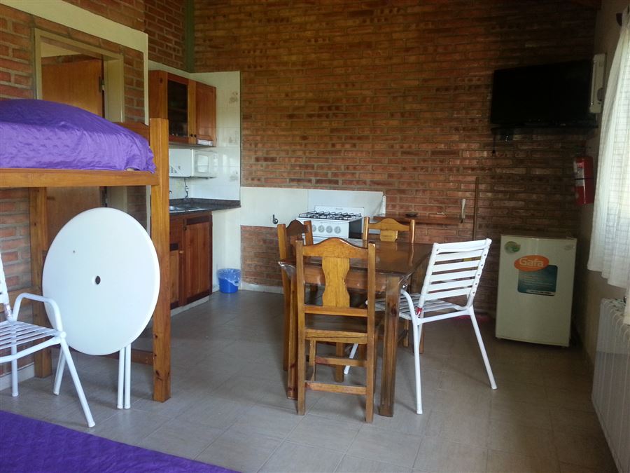 Estamos ubicados a la vera del río De los Sauces, nos separa de éste una bellísima costanera con la vista privilegiada de su extensa playa. Contamos con 6 cabañas: 2 unidades dúplex de 2 ambientes en planta baja con 1 dormitorio matrimonial con sommiers, y en la cocina comedor 2 camas una individual y una marinera. 2 unidades dúplex de tres ambientes 2 dormitorios en planta alta, uno matrimonial con con sommiers y una cama individual el otro con 2 camas individuales, en la planta baja se encuentra la cocina comedor y el baño donde se ubicaría la sexta plaza. 2 unidades individuales de dos ambientes en planta baja, con un dormitorio matrimonial con sommiers y una cocina comedor donde se encuentran las otras dos camas una individual y una marinera. Las cabañas están construidas con ladrillos vistos, tejas y detalles en madera. Vista panorámica 360º a las sierras y el río Los Sauces. Check-In: 13:00 hs. Check-Out: 10:00 hs.