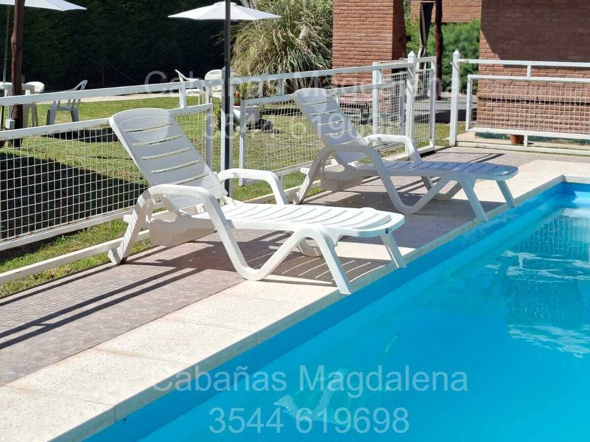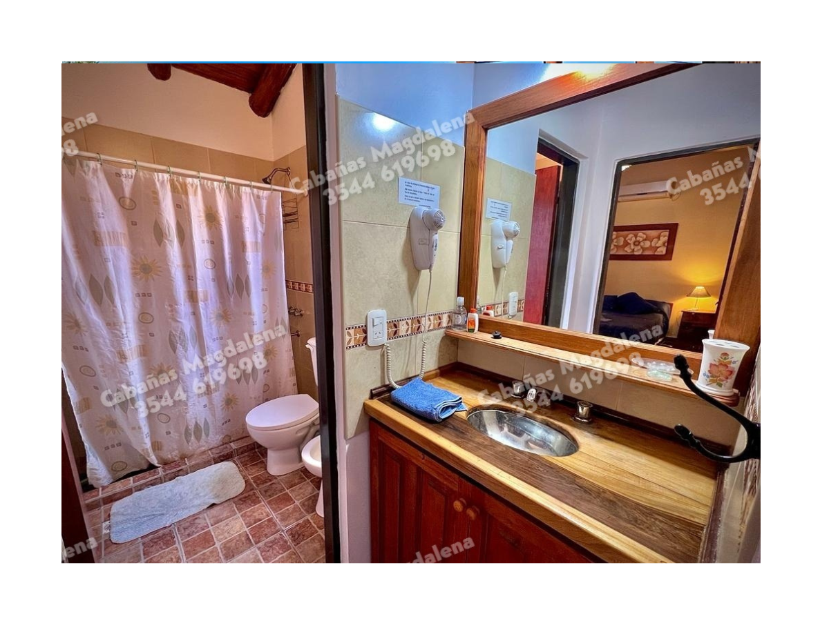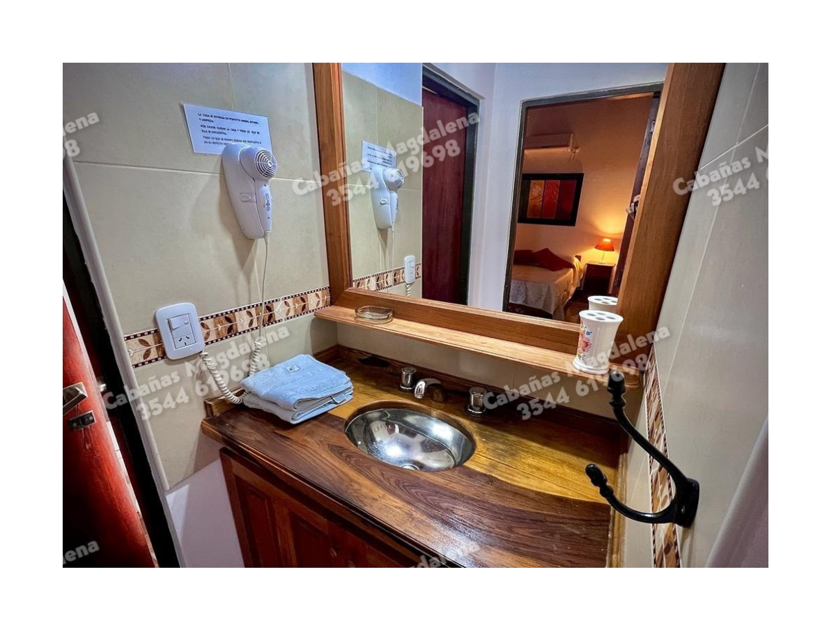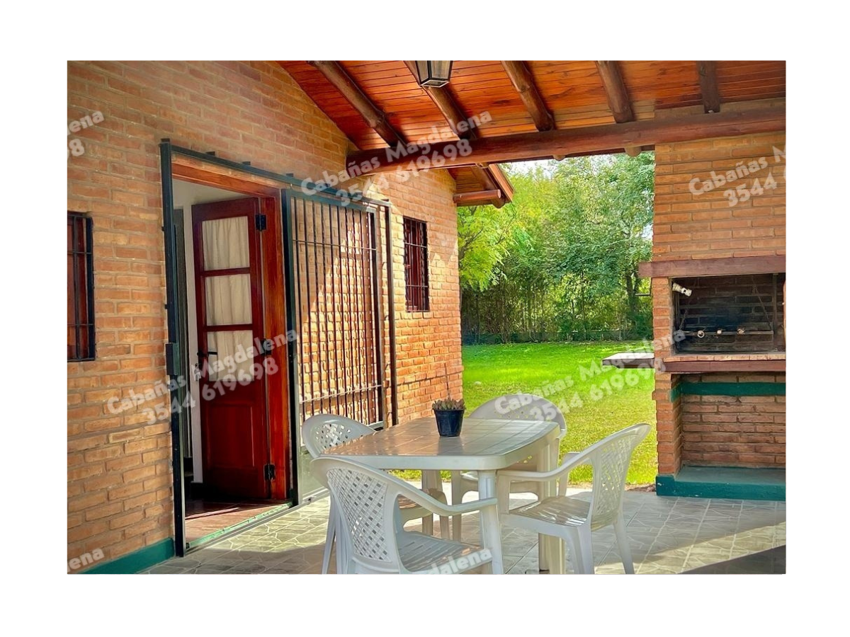 Contamos con tres unidades, una para 2/3 personas, dos para 4/5 personas, distribuidas en una habitación matrimonial y living con camas simples. Construcción de ladrillo y madera. A un paso del centro y río, amplio predio parquizado cerrado. Piscina Free pass (pase libre) en gimnasio Renacer.