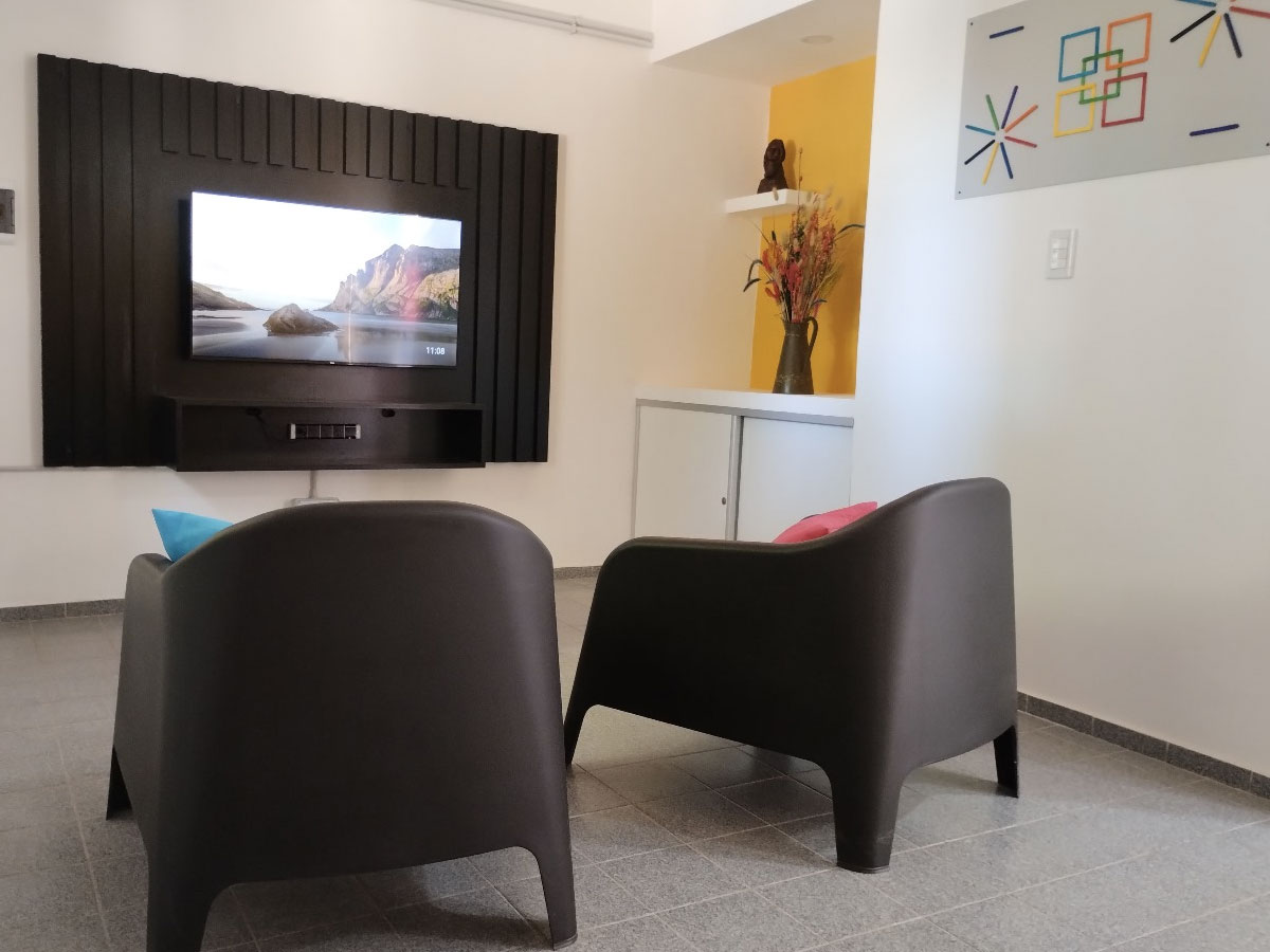 Moderna cocina comedor con vajilla completa, heladera con freezer, horno eléctrico, pava eléctrica, termotanque y anafe. Living con TV smart de 43 pulgadas con Android TV, Aire Acondicionado Frio/Calor, WiFi exclusivo, Cochera cubierta, caja de seguridad.