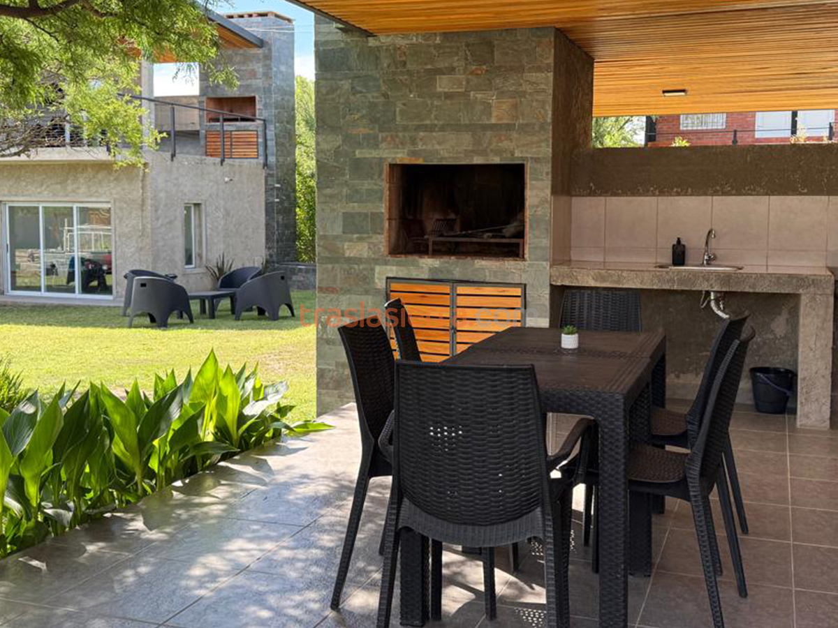 Cabaña de 3 ambientes, con 2 dormitorios, uno matrimonial y otro con camas simples. Baño completo. Cocina living comedor totalmente equipado, cochera individual y galería semitechada con asador.