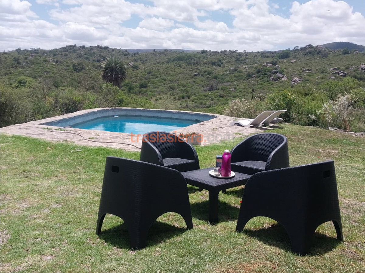 Casa en la loma con vista al cordón del cerro Champaquí, 3 dormitorios, 2 baños, comedor, living, cocina, lavadero y pileta. Un dormitorio con baño p...