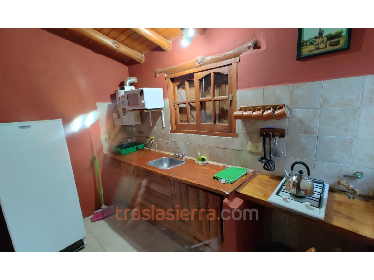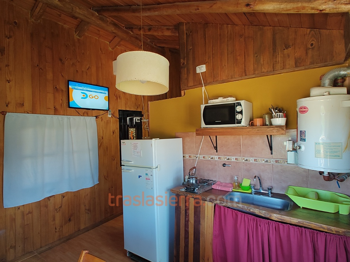![]() | Cocina | En cabañas: cocina con anafe 2 hornallas, microondas, heladera |