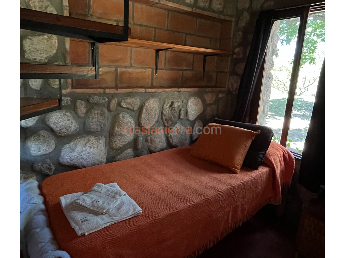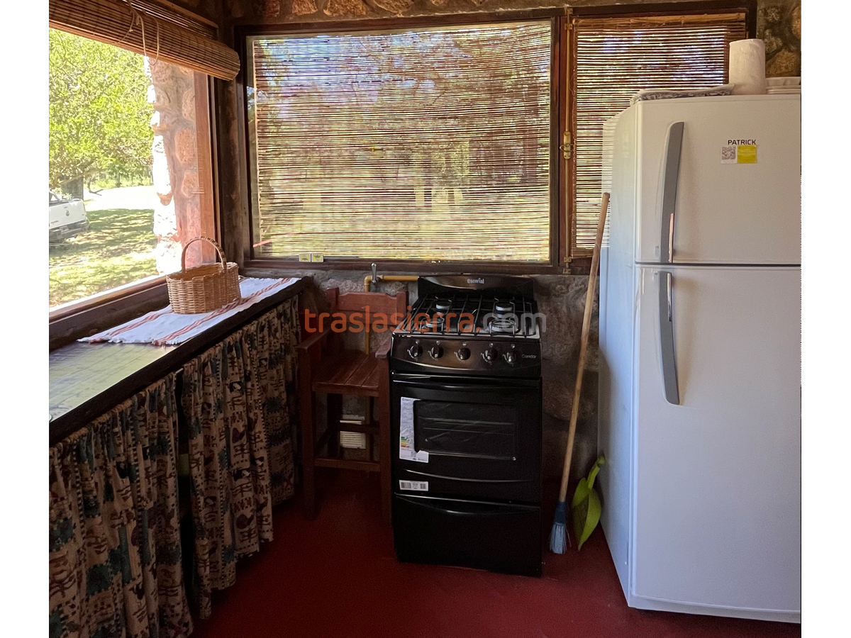 Emplazadas en un predio de dos hectáreas parquizadas. Contamos con 2 unidades independientes distribuidas de la siguiente manera: planta baja con cocina comedor, 2 camas individuales con una marinera, baño, galería/ cochera y asador particular. La planta alta (se accede por escalera caracol) consta de una cama matrimonial y balcón con vista a las sierras.