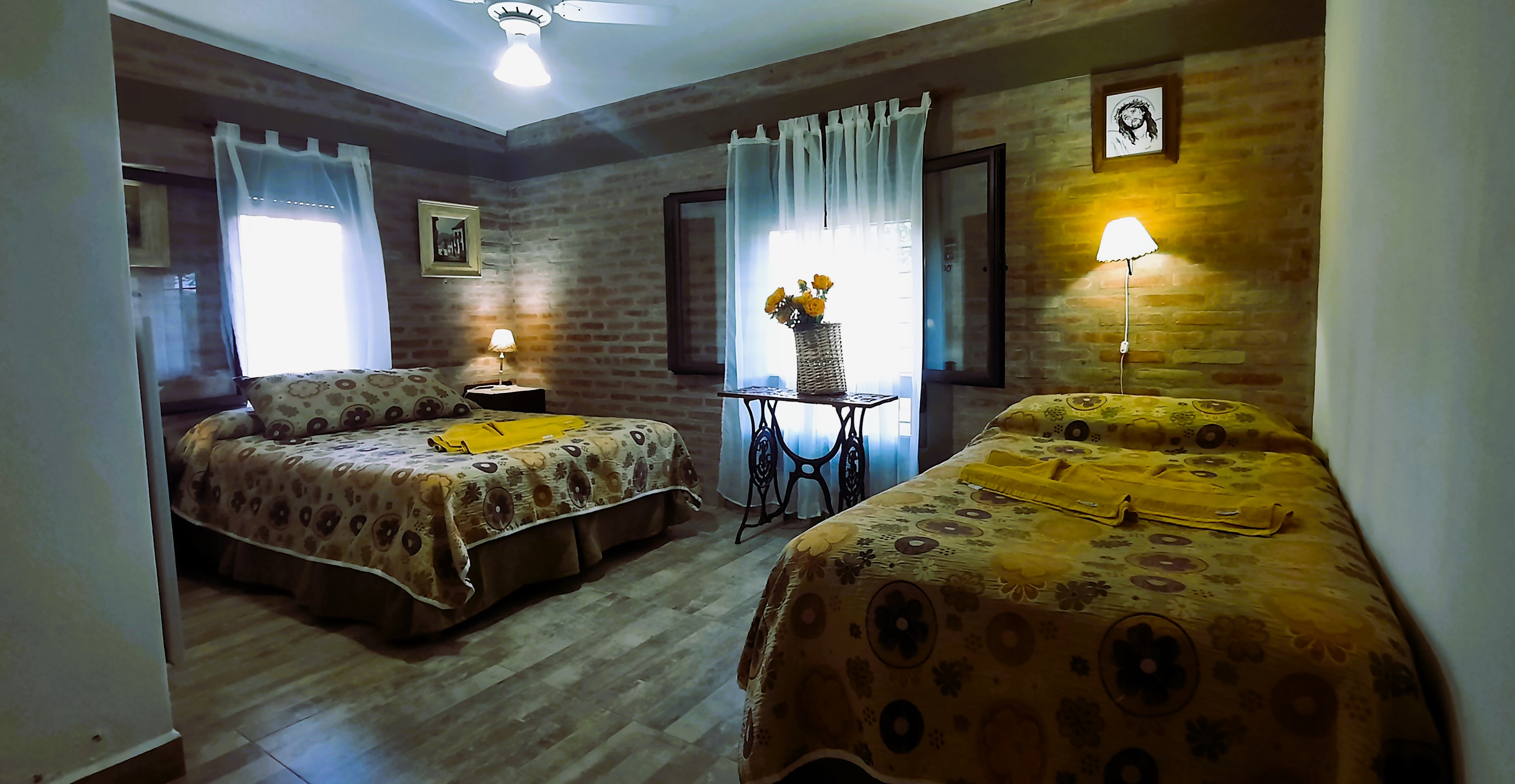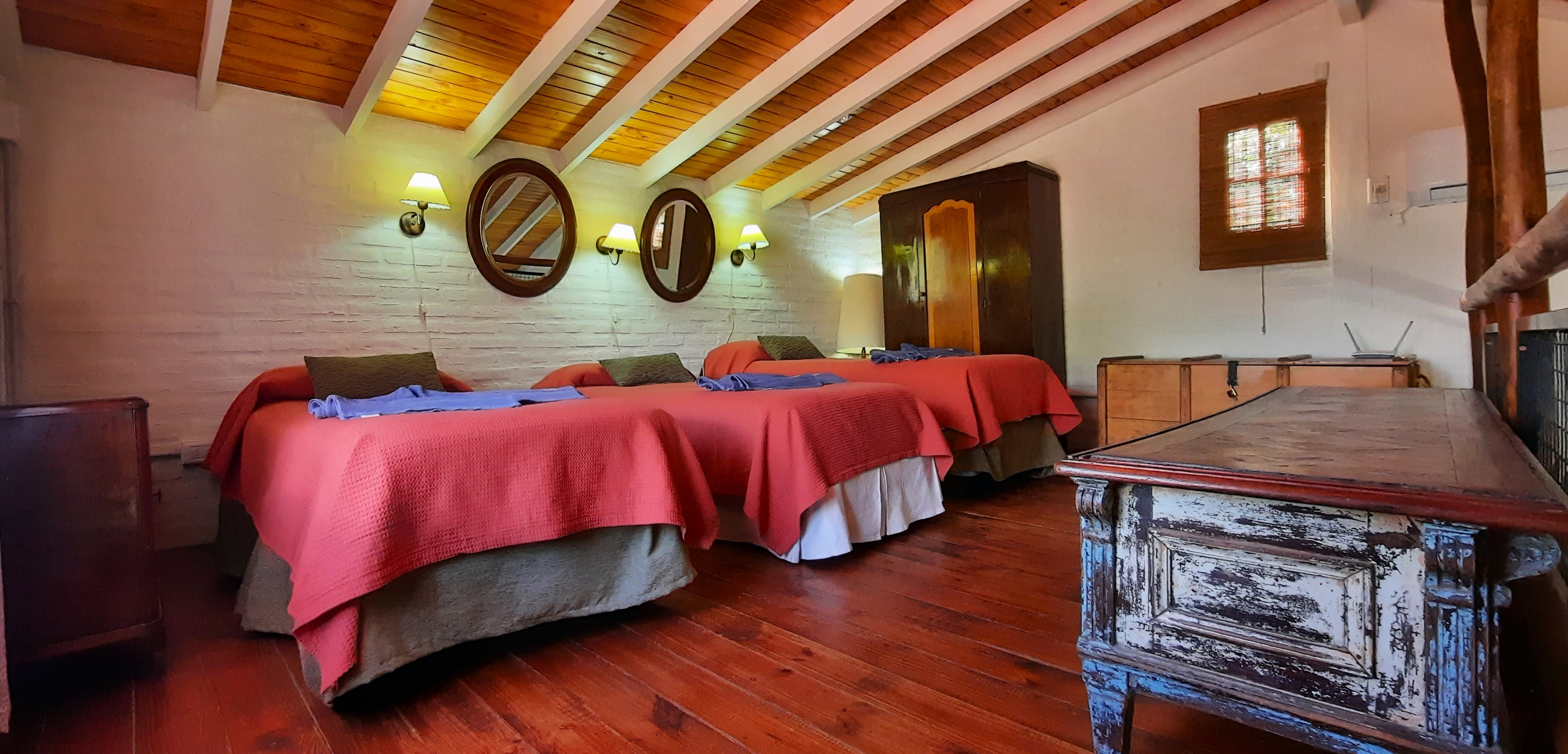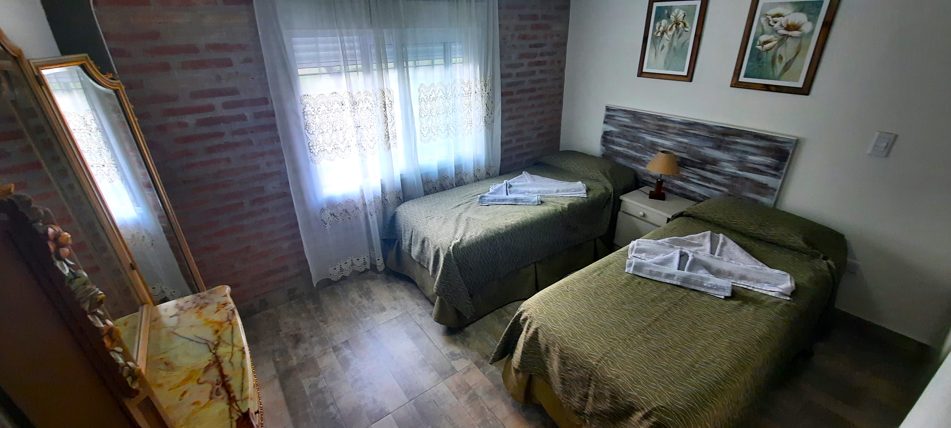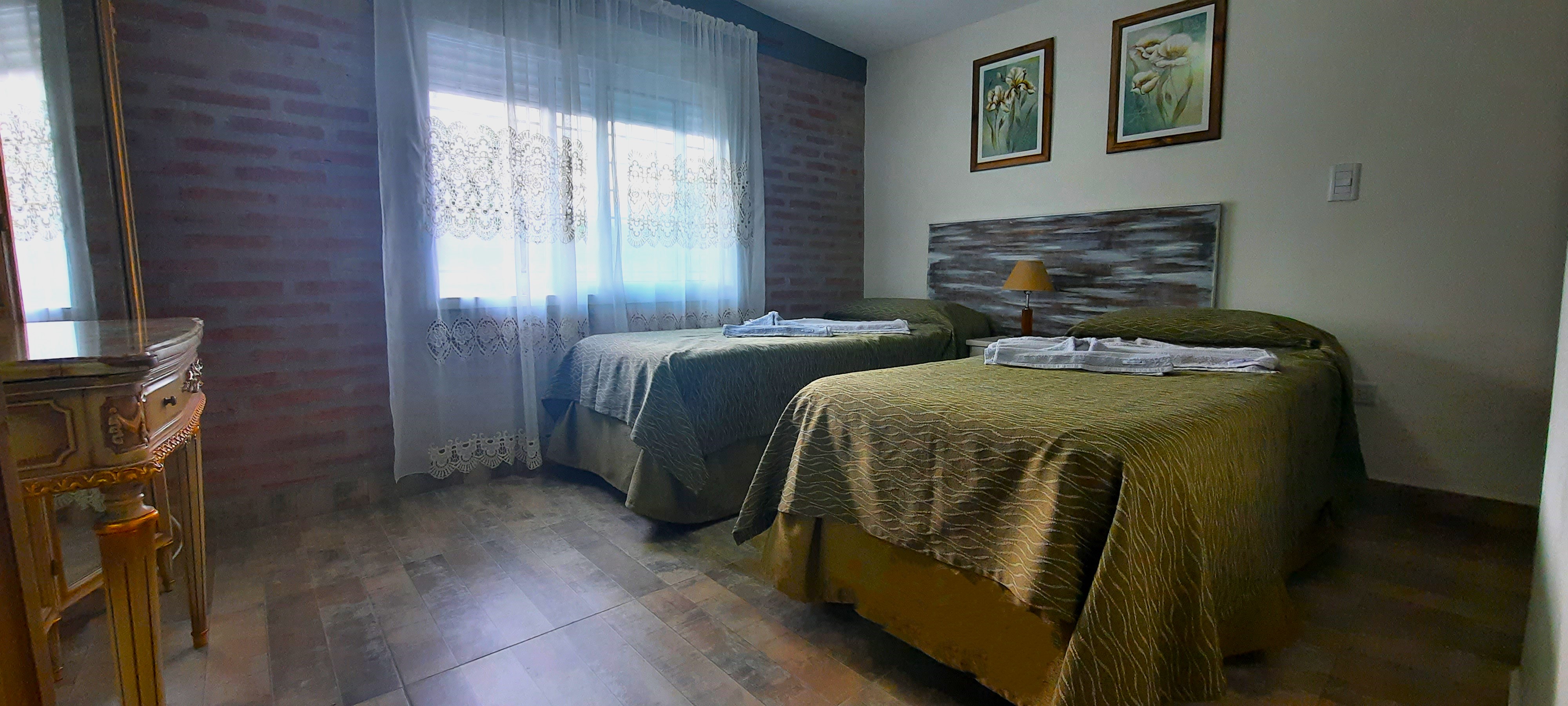 Otro Matrimonial con sommiers de dos plazas y un sommier de plaza y media, con baño en suite, con ventilador de techo. Otro con dos sommiers individuales de una plaza.