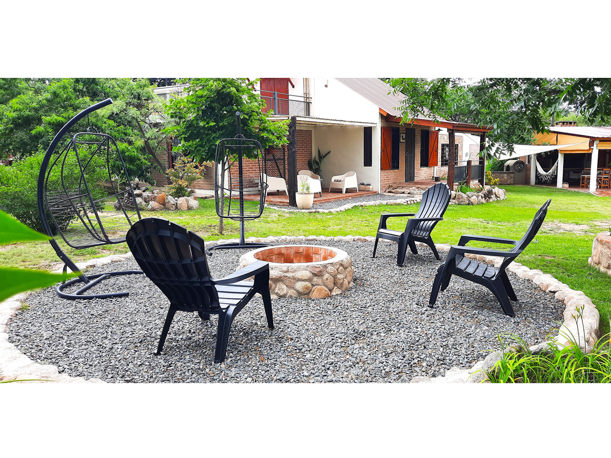 Amplio asador, lavadero y baño en quincho. Horno Chileno a leña.