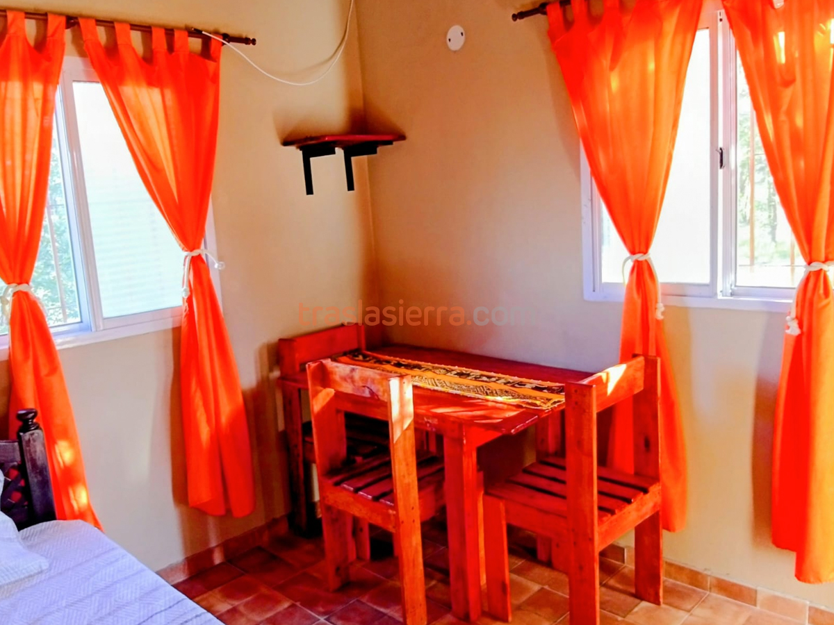Unidad con capacidad para hasta 5 personas distribuidas en dos habitaciones, una matrimonial y en la otra cama marinera, cama cucheta y pequeña cocina con anafe y heladera para cocina simple. Baño completo.