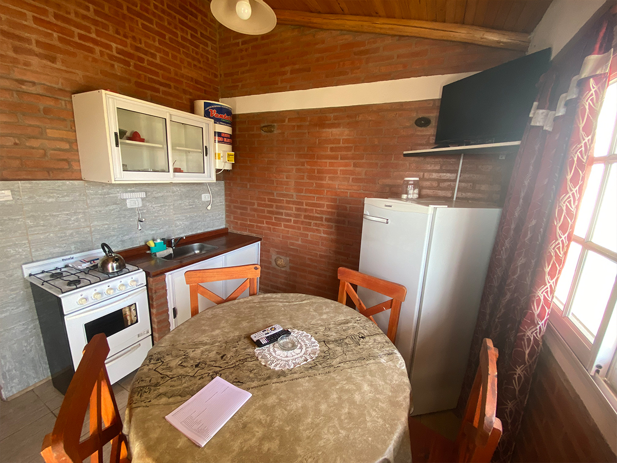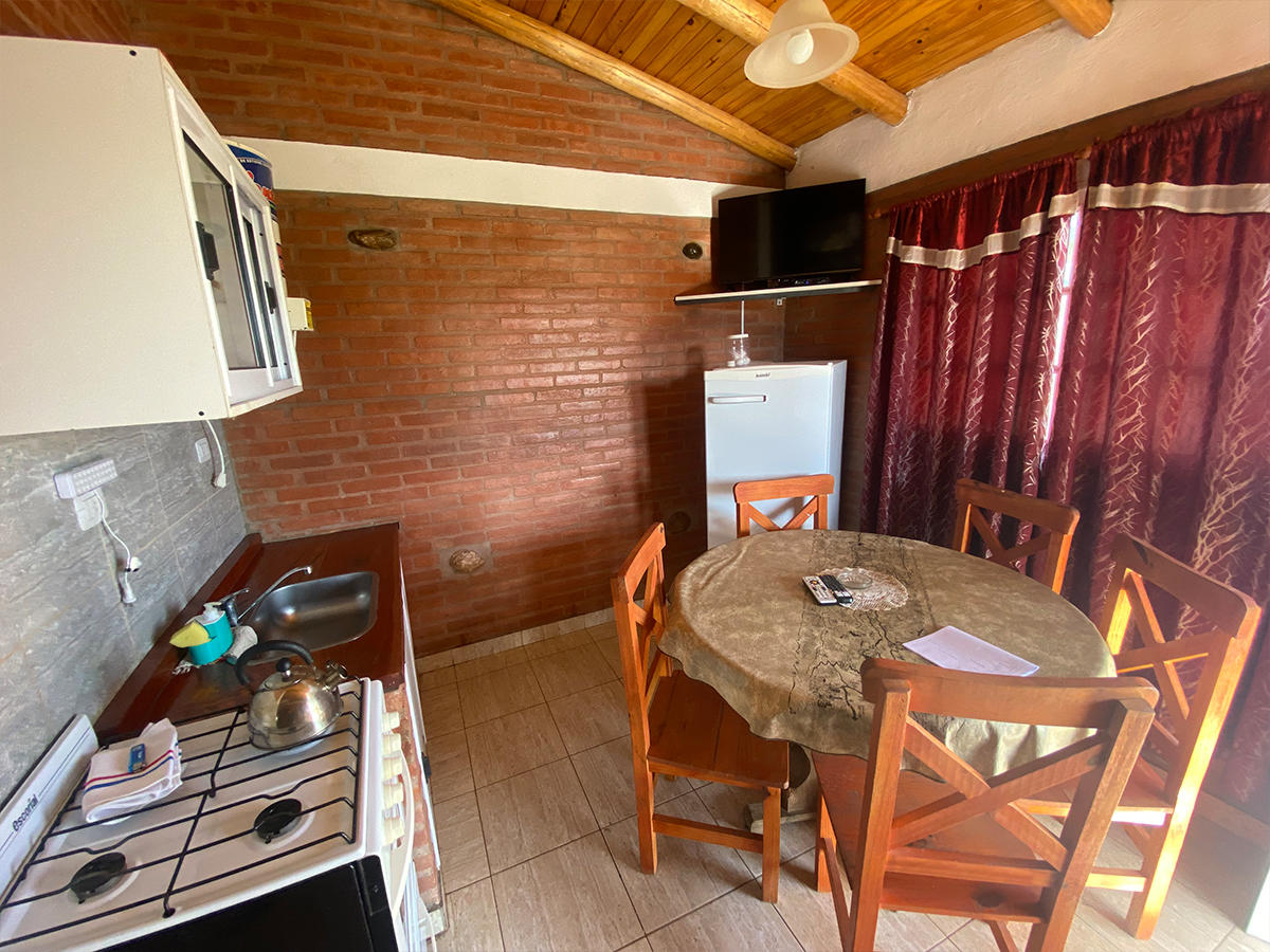![]() | Cocina | Equipamiento completo, en cabañas cocina con horno a gas, en departamentos anafe |