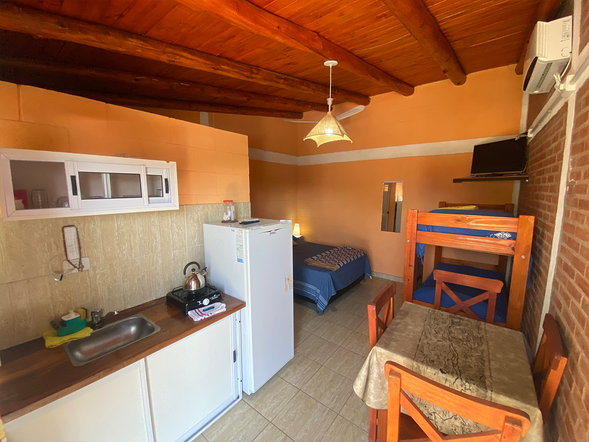 Con vista a las sierras y a dos cuadras del río Panaholma, las cabañas cuentan con dos amplios dormitorios para 4, 5 y 6 personas, baño completo, cocina comedor equipada con horno, heladera con freezer, vajilla completa. Smart TV de 32" con conexión satelital, wifi, aire acondicionado, ventiladores y ropa de cama.