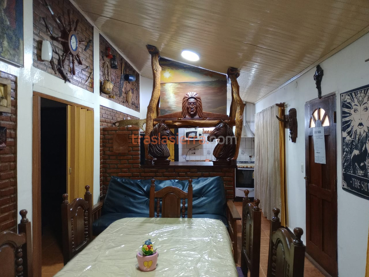 Casa con capacidad hasta 6 personas, con dos dormitorios, baño, cocina, comedor de 4x8m con snack-bar. Galería, asador, cocheras techadas, 15m de frente con parque.